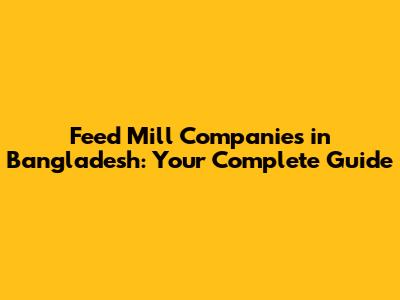 Feed Mill Companies In Bangladesh: A Comprehensive Guide