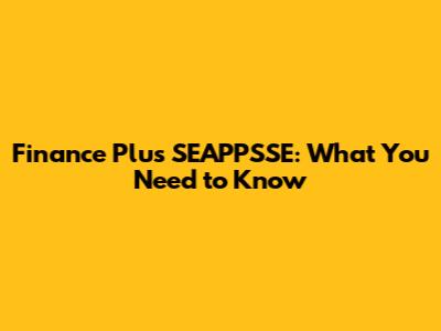Finance Plus SEAPPSSE: What You Need To Know