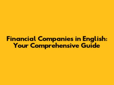 Financial Companies In English: Your Comprehensive Guide