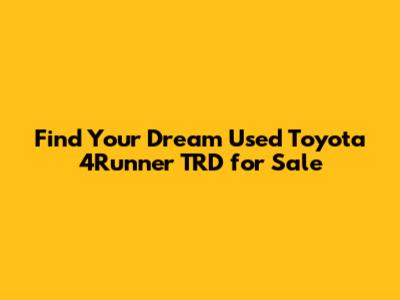 Hey guys, are you on the hunt for a rugged, reliable, and seriously cool SUV? If you're nodding your head, then you're in the right place! We're diving deep into the world of used Toyota 4Runner TRD models for sale, exploring why they're such a hot commodity, what to look for, and how to snag the best deal. Get ready to rev up your engines because we're about to embark on an adventure that could lead you to your next off-road beast.