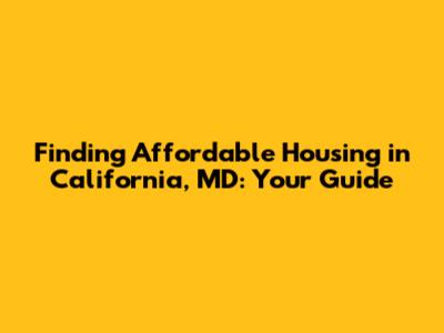 Finding Affordable Housing In California, MD