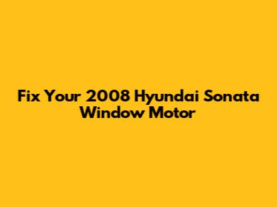 Fix Your 2008 Hyundai Sonata Window Motor