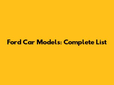 Ford Car Models: Complete List