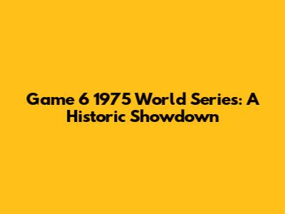 Game 6 1975 World Series: A Historic Showdown