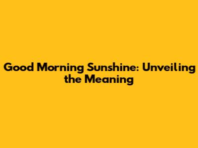 Good Morning Sunshine: Unveiling The Meaning