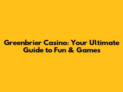 Greenbrier Casino: Your Ultimate Guide To Fun & Games