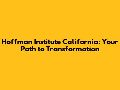 Hoffman Institute California: Your Path To Transformation