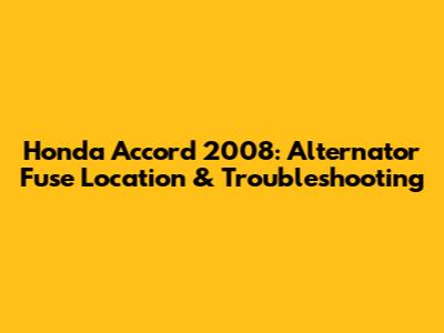 Honda Accord 2008: Alternator Fuse Location & Troubleshooting