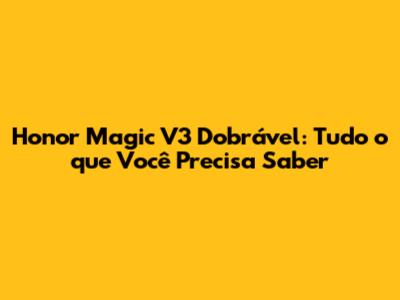 Honor Magic V3 Dobrável: Tudo O Que Você Precisa Saber