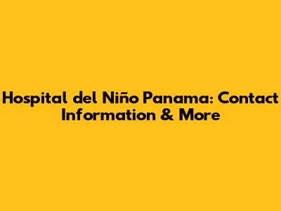 The Essential: Hospital del Niño Panama Phone Number and Contact Details