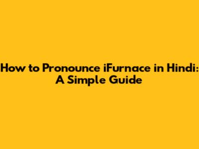 How To Pronounce IFurnace In Hindi: A Simple Guide