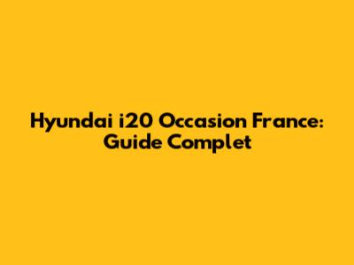 Hyundai I20 Occasion France: Guide Complet