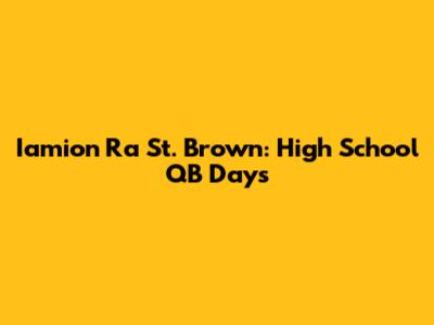 In conclusion, Iamion Ra St. Brown's high school career as a quarterback provided him with invaluable experiences and lessons that would shape his future. The challenges he faced, the triumphs he celebrated, and the relationships he built all contributed to his growth as an athlete and as an individual. The influence of his family, particularly his brothers, played a significant role in his development, instilling in him a strong work ethic and a commitment to excellence.
