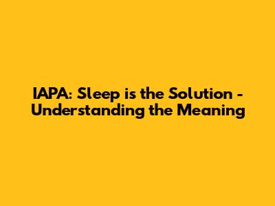 IAPA: Sleep Is The Solution - Understanding The Meaning