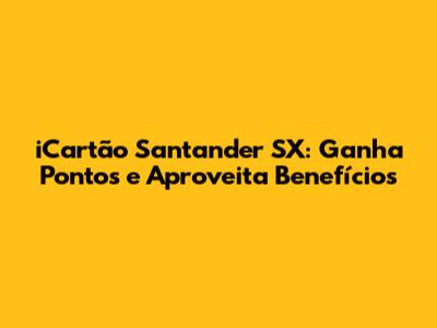 • Programa de Pontos: O iCartão SX oferece a possibilidade de participar do programa de pontos do Santander. Isso significa que você acumula pontos a cada compra e pode trocar por passagens aéreas, produtos, descontos e muito mais. É uma ótima forma de ter benefícios extras com o seu cartão.