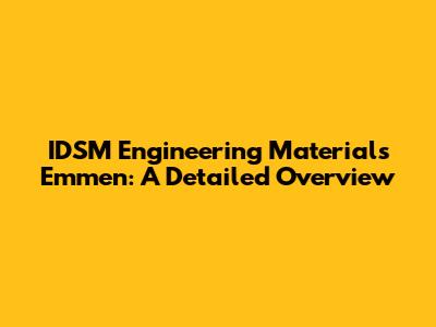 IDSM Engineering Materials In Emmen: A Detailed Overview