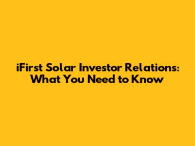 Hey investors! Let's dive into the world of iFirst Solar investor relations. If you're looking to understand how First Solar, a major player in the solar energy industry, communicates with its shareholders and the financial community, you've come to the right place. We'll be breaking down what investor relations means for a company like First Solar, why it's crucial for investors, and where you can find all the essential information. Understanding investor relations is key to making informed investment decisions, and for a company at the forefront of renewable energy technology, it's especially important. So, buckle up, and let's get started!