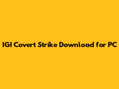 How to Download IGI Covert Strike for PC