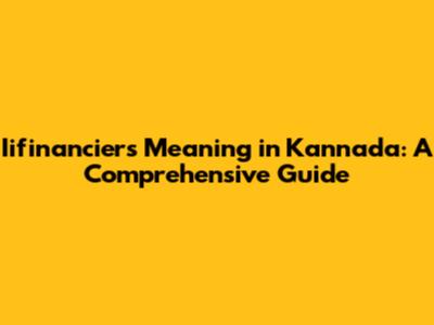 Iifinanciers Meaning In Kannada: A Comprehensive Guide