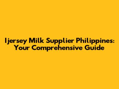 Ijersey Milk In The Philippines: Your Guide To Suppliers