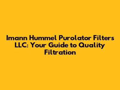 Hey guys! Ever wondered about getting the best filters for your vehicles or industrial needs? Let’s dive into Imann Hummel Purolator Filters LLC, a name synonymous with quality and reliability in the filtration industry. In this article, we will break down everything you need to know about them, why their filters are top-notch, and how you can benefit from using their products.