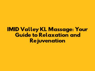 Hey guys! Are you tired of the daily grind? Feeling those knots in your shoulders and that tension in your neck? Well, guess what? You're in luck! I'm here to tell you all about IMID Valley KL Massage, a fantastic spot in Kuala Lumpur where you can ditch the stress and embrace pure relaxation. We're diving deep into what makes this place special, the types of massages they offer, and why it's a must-visit for anyone looking to unwind. So, grab a comfy seat, and let's get started on this journey to ultimate chill!