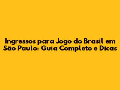 Onde Comprar Ingressos para os Jogos do Brasil em São Paulo: Fontes Oficiais