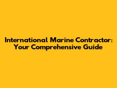 International Marine Contractor: Your Comprehensive Guide