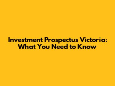 Investment Prospectus Victoria: What You Need To Know