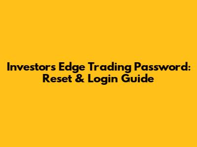 Investor's Edge Trading Password Reset & Login Help