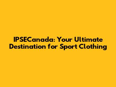 IPSECanada: Your Go-To Shop For Sport Clothing