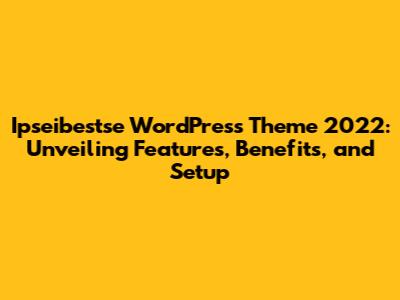 Ipseibestse WordPress Theme 2022: Features, Benefits, And Setup
