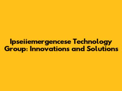 Ipseiiemergencese Tech Group: Innovations & Solutions