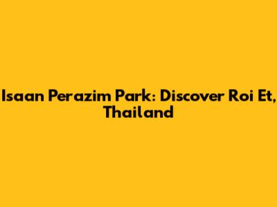 Hey guys! Ever heard of Isaan Perazim Park in Roi Et, Thailand? If not, buckle up because I'm about to take you on a virtual tour of this hidden gem. This place isn't just another park; it's a blend of natural beauty, cultural significance, and recreational fun. So, whether you're a seasoned traveler or just looking for a cool spot to add to your bucket list, let's dive into everything that makes Isaan Perazim Park a must-visit destination.