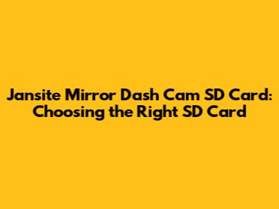 For Jansite mirror dash cams, SDHC and SDXC cards are generally the recommended choices. Older SD cards might not have the speed or capacity to handle continuous video recording.