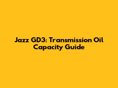 Jazz GD3: Transmission Oil Capacity Guide