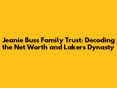 Hey everyone, let's dive into the fascinating world of the Jeanie Buss Family Trust. It's not just about the money, guys; it's about the legacy, the Lakers, and the business savvy that's kept the purple and gold shining bright for decades. We're going to break down the net worth, the people behind the scenes, and what makes this family trust such a significant force in the sports world. Buckle up; this is going to be a fun ride!