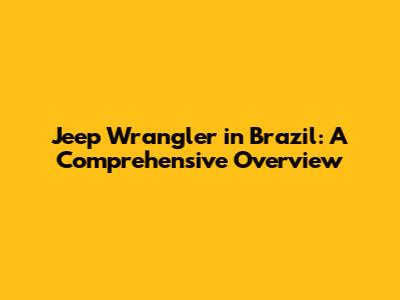 Jeep Wrangler In Brazil: A Comprehensive Overview