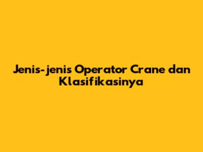 Jenis-jenis Operator Crane Dan Klasifikasinya