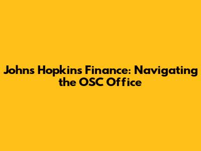 Johns Hopkins Finance: Navigating The OSC Office