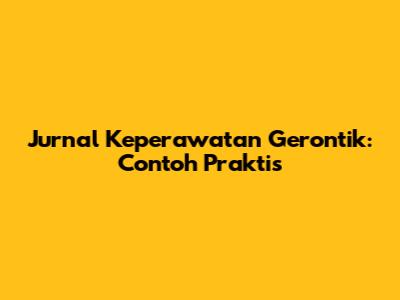 Jurnal Keperawatan Gerontik: Contoh Praktis