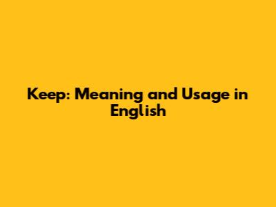Keep: Meaning And Usage In English