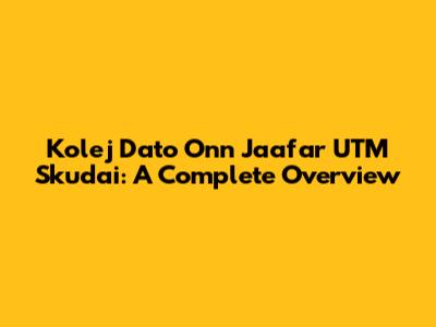 Kolej Dato Onn Jaafar UTM Skudai: A Complete Overview