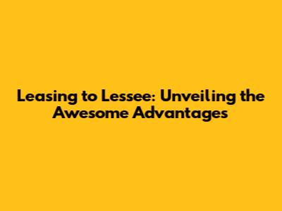 Leasing To Lessee: Perks And Advantages Explained