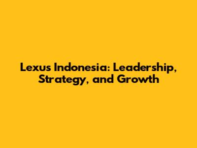 Lexus Indonesia: Leadership, Strategy, And Growth