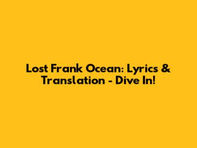 Lost Frank Ocean: Lyrics & Translation - Dive In!