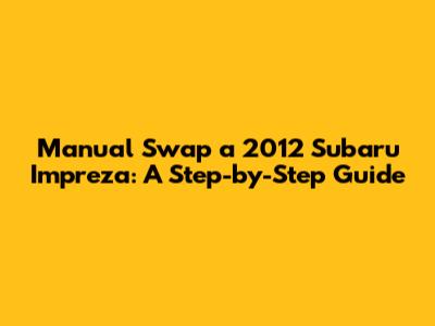 Manual Swap A 2012 Subaru Impreza: A Step-by-Step Guide