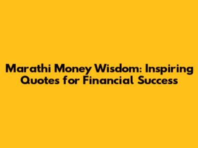 Marathi Money Wisdom: Inspiring Quotes For Financial Success