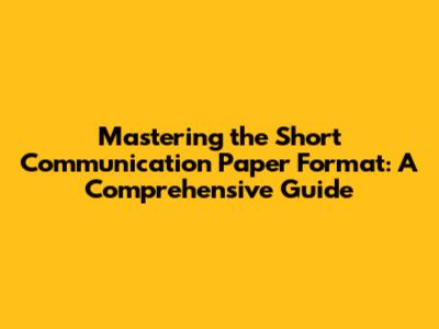Mastering The Short Communication Paper Format