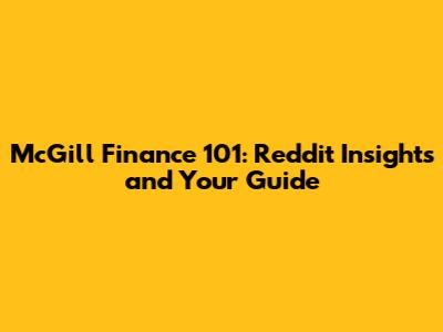 McGill Finance 101: Reddit Insights And Your Guide